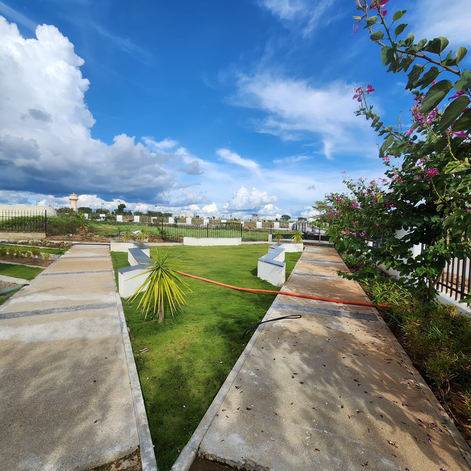 Children’s play area & other amenities: The well-developed park features walking trails that wind through lush greenery, allowing the residents to take strolls or engage in brisk walks while enjoying the natural surroundings. Throughout the park, you will find places for relaxation.